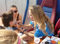 Stawiam na bezpieczeństwo i zadowolenie moich małych klientów. Dlatego używam tylko profesjonalnych, nietoksycznych farb do malowania twarzy, które są łatwe do zmycia i nie szkodzą delikatnej skórze. Dbam też o higienę, używając odpowiednich narzędzi do aplikacji.